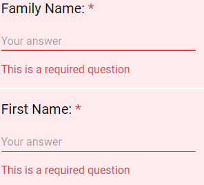 'This is a required question' will show below the missing fields if you've attempted to submit an incomplete form.